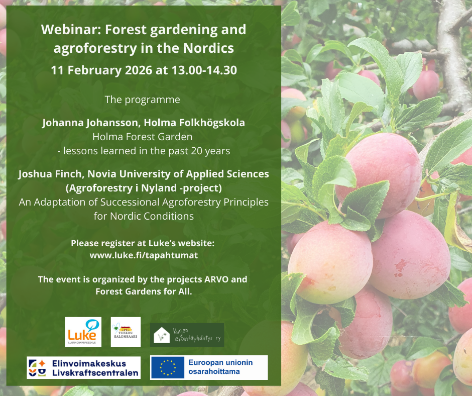 Webinaareja metsäpuutarha-aiheesta suomeksi ja englanniksi Ilmoittaudu webinaariin (suomenkielinen) Register to the webinar (in English)